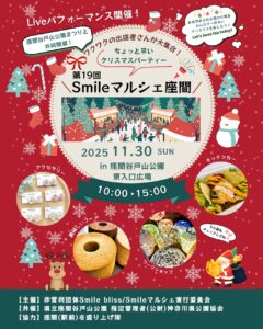 最新情報 2025/11/30 🌟未経験入社が9割🌟ガーデニングの担当者(職業指導員)募集中!@伊勢原事業所 2025/11/29 秋のイベントを開催しました!@淵野辺事業所 2025/11/27 Smileマルシェ座間 最新情報一覧はこちら