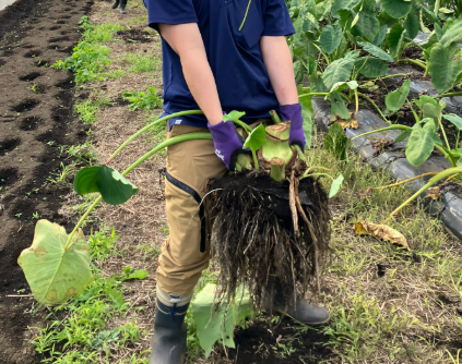 さて、10月後半から11月にかけての畑作業では、里芋の収穫を行いました。
