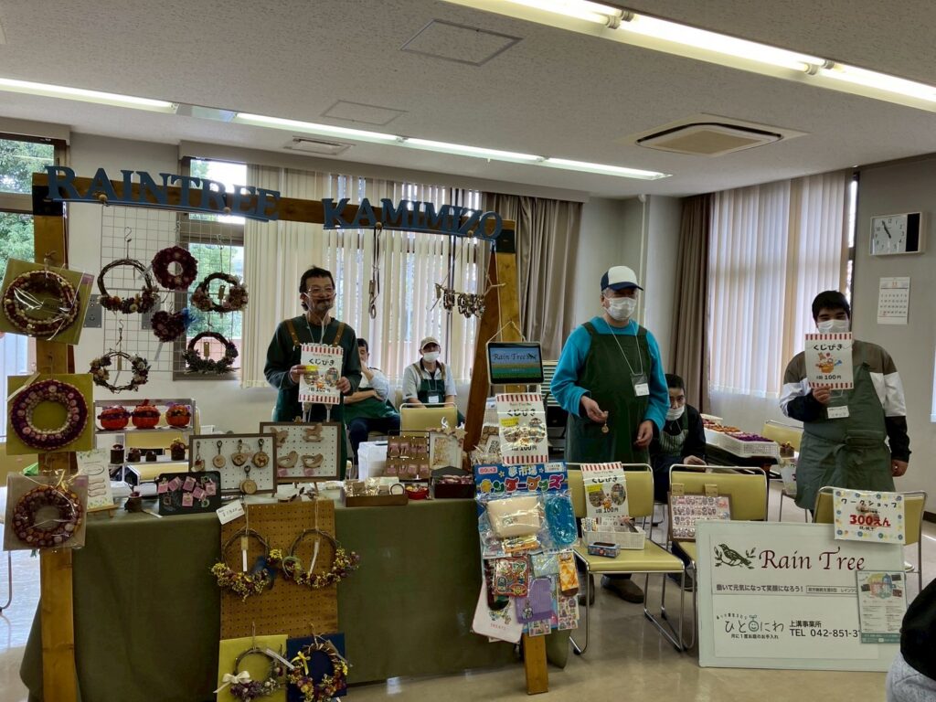 当日は多くの方が足を止めてくださり、ブースは大変にぎわいました。 特に「子どもくじ」と「季節のリース」が大人気で、行列ができるほどの盛況でした。 利用者さんも売り子として元気に声をかけてくれたり、商品の説明を丁寧に行ってくれたりと、一人ひとりが活躍してくれました。