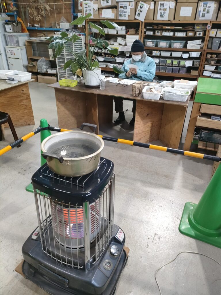 さて室内はというと、暖かいストーブを囲み、こつこつクラフト作業をおこない、静かな時間が流れております。