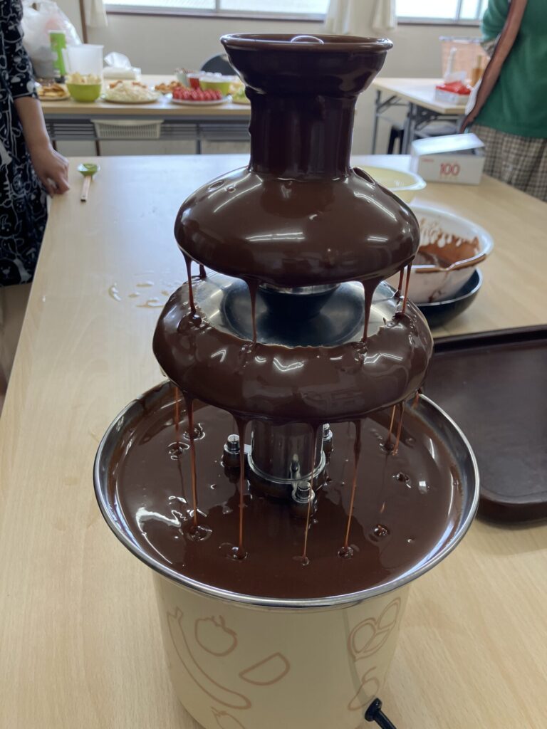 チョコレートイベント 2026年3月4日2026年2月27日 ナチュラルライフサポートブログ 「レインツリーホーミーズのみなさまへ」 伊勢原事業所では2月のイベントでチョコレートタワーと綿菓子を楽しみました。 イチゴ、バナナ、ブドウ、ホットケーキ、マシュマロなどなどにチョコレートソースをつけて、綿菓子も作って食べ放題! 皆さん好きなものにチョコレートをたっぷりつけて豪華なおやつを楽しみました。